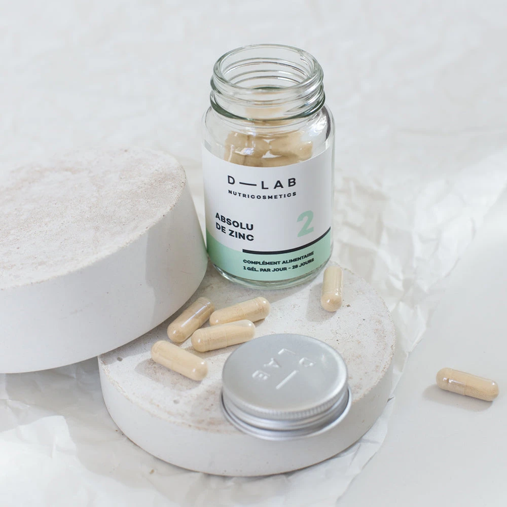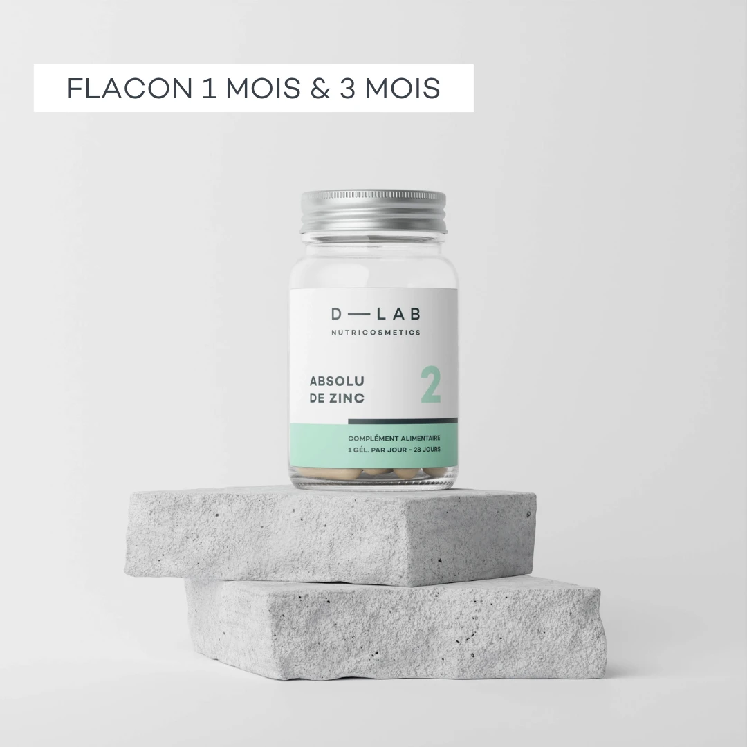 L’efficacité d’un complément alimentaire à base de zinc dépend en majorité de la forme chimique sous laquelle le zinc est présent. En effet, le sel de zinc doit être soluble et biodisponible pour que le corps puisse l’assimiler de manière optimale ! D-LAB Nutricosmetics a choisi pour son Absolu de Zinc de combiner 3 formes différentes de ce minéral, afin d’en booster les effets et améliorer sa biodisponibilité.