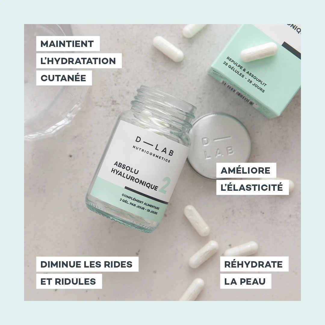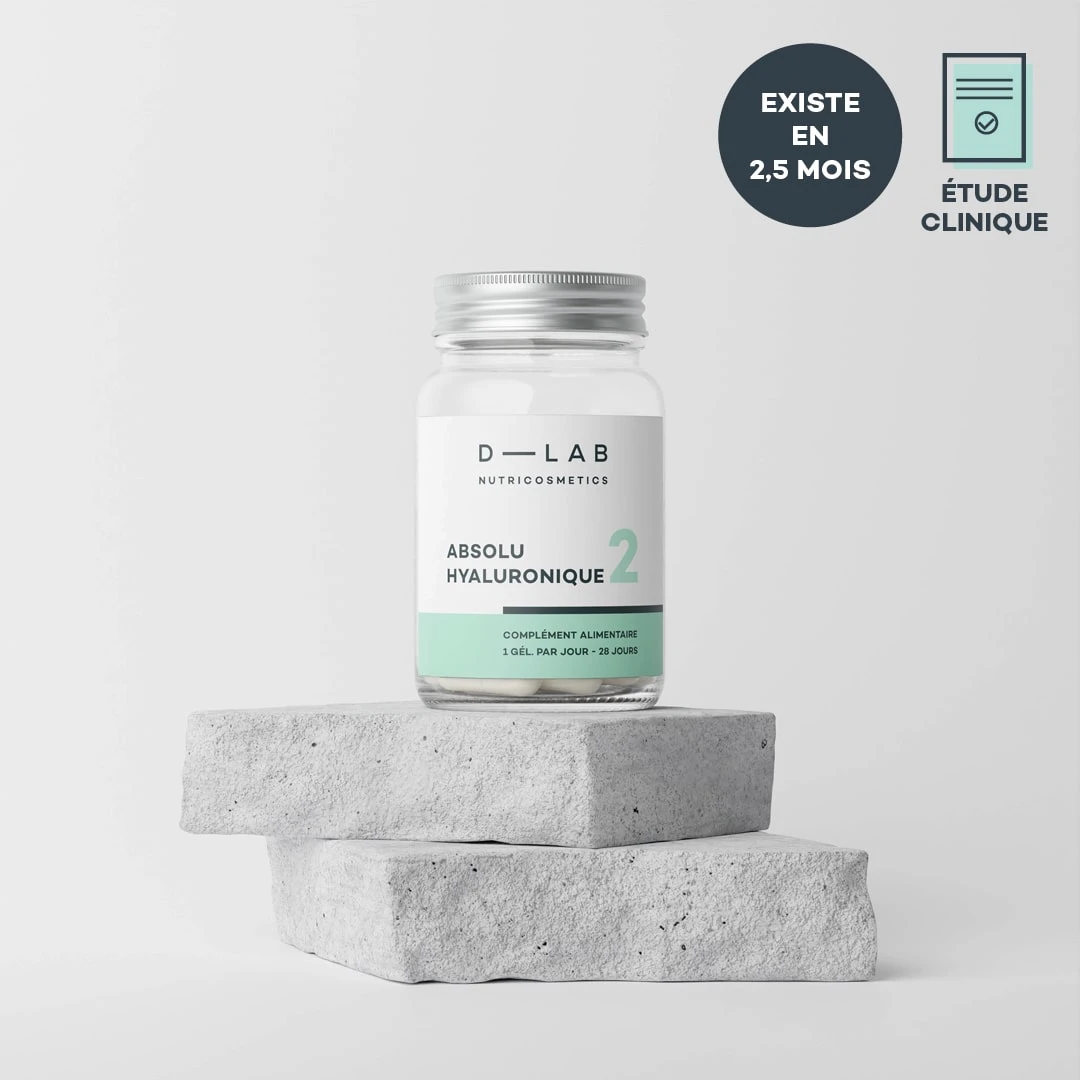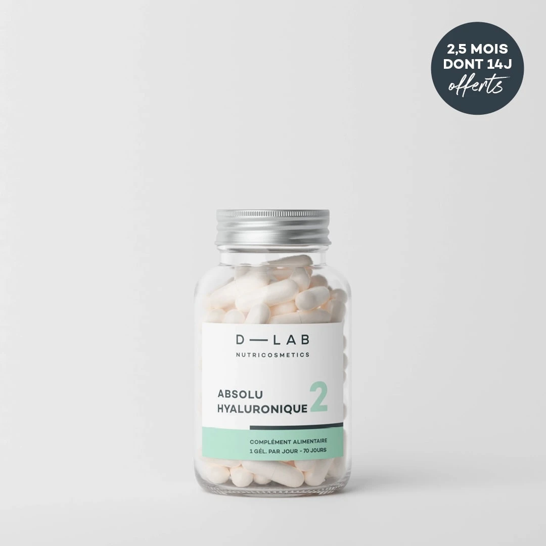 Il en existe de différentes tailles, et selon leur emplacement dans les différentes couches de la peau, leurs actions diffèrent. Il est important de noter que la molécule entière d’acide hyaluronique est trop lourde pour passer la barrière cutanée. De fait, une supplémentation orale est primordiale pour bénéficier des avantages de cette molécule star! Pour voir un véritable effet, il est important d’augmenter sa synthèse, c’est pour cela que l’Absolu Hyaluronique est composé d’un spectre d’acides hyaluroniques de différentes tailles.