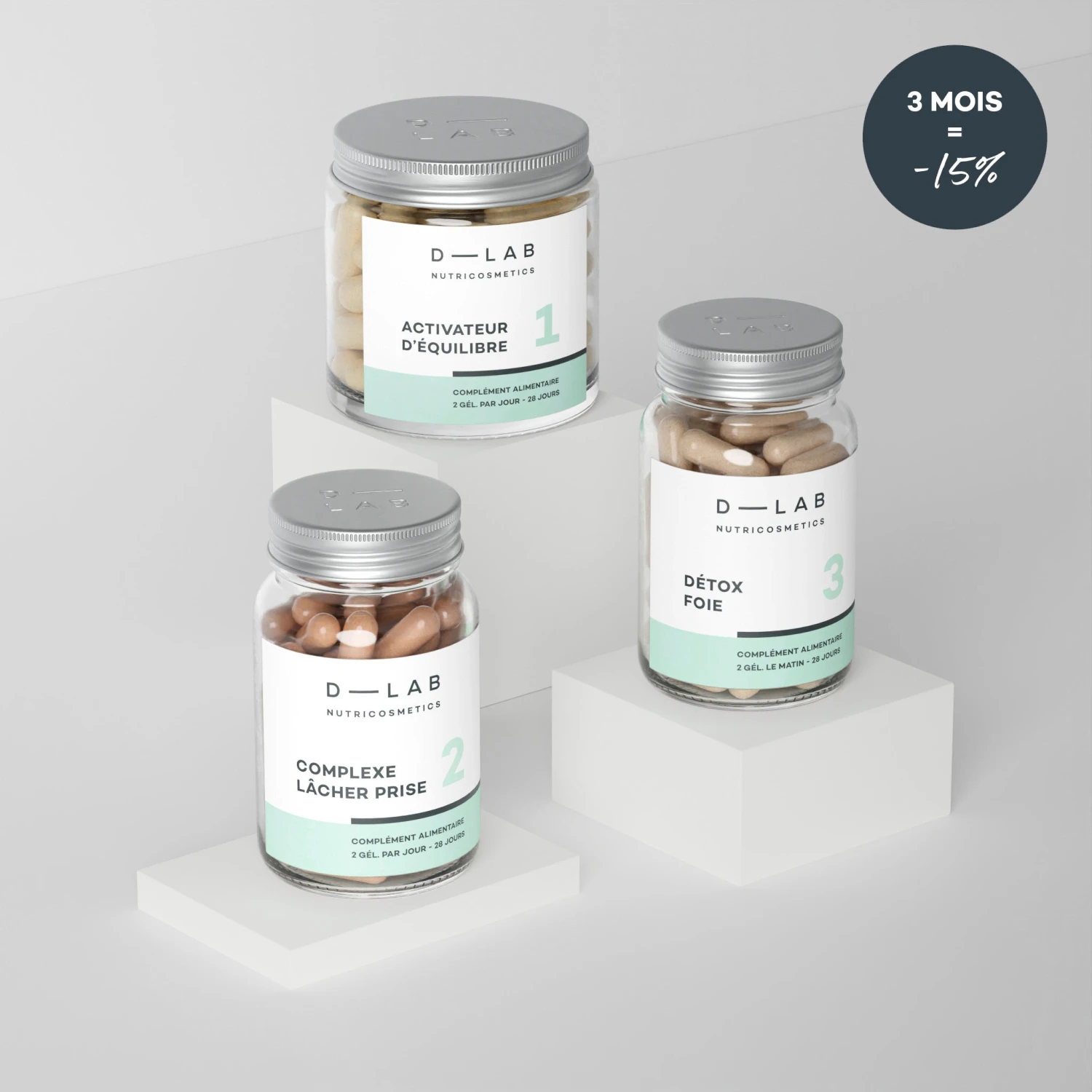 Un programme de 3 formules innovantes reconnues pour agir sur l’ensemble de l’organisme : L’Activateur d’Équilibre régule l’activité neuro-hormonale, le Complexe Lâcher Prise augmente la résistance du corps face au stress et le Détox Foie relance les énergies.