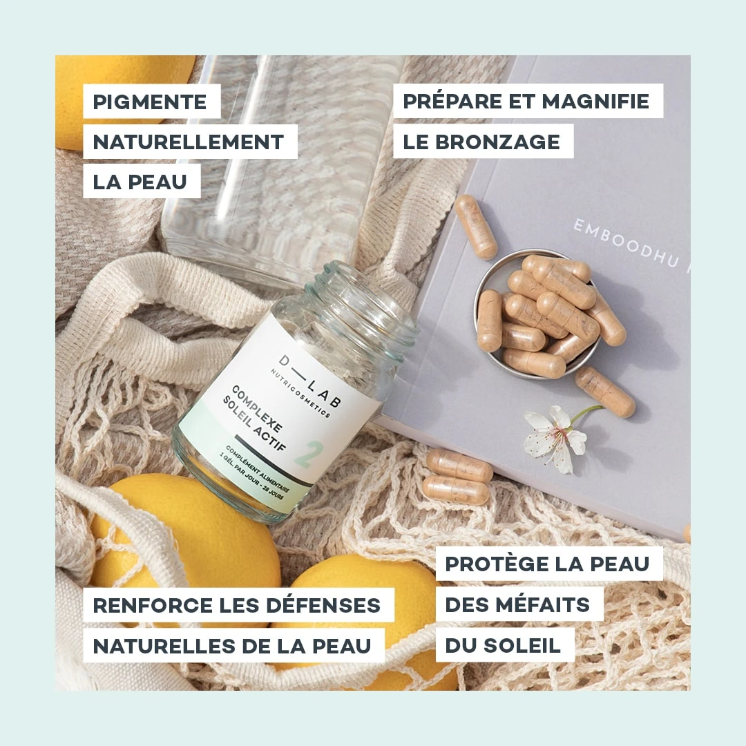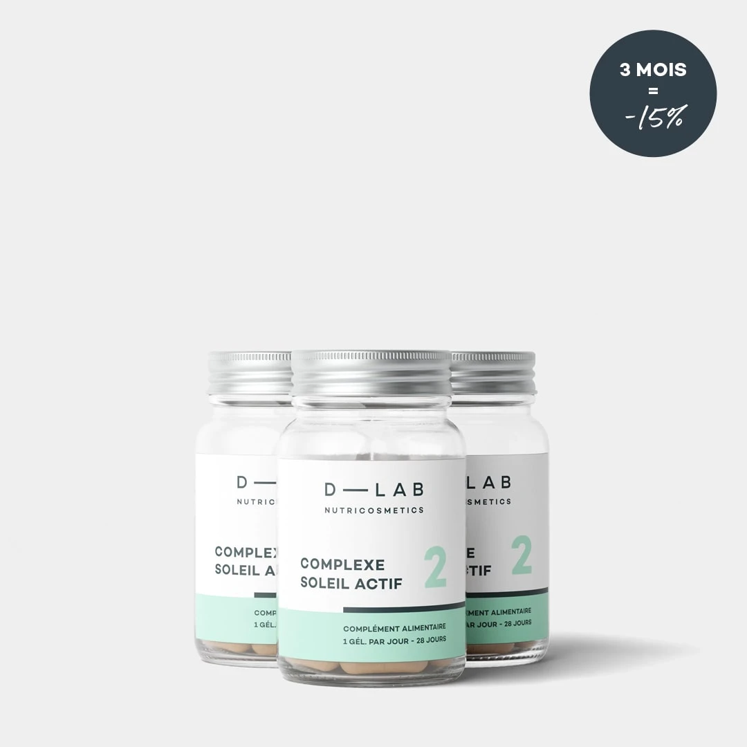 Le Complexe Soleil Actif est idéal pour ceux et celles qui veulent avoir un beau teint doré tout en évitant la surexposition au soleil. Cette formule innovante 100% naturelle agit en trois temps : elle pigmente naturellement la peau grâce aux caroténoïdes, elle active et prolonge le bronzage et protège la peau des dommages causés par les rayons du soleil.