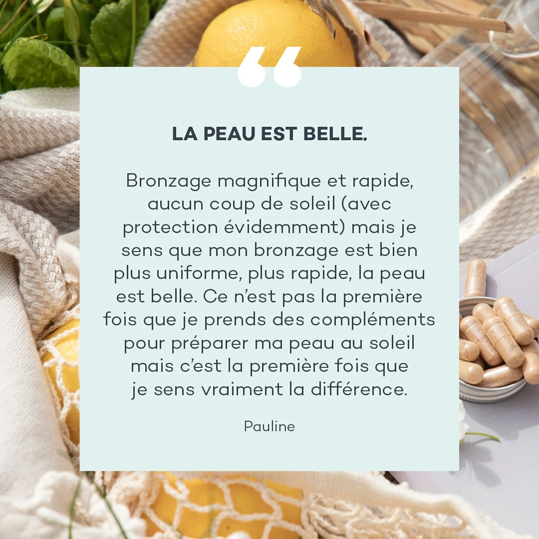 1- UN BRONZAGE NATUREL ET DURABLE Pour obtenir un teint hâlé sans prendre le risque de surexposition au soleil, nous avons sélectionné des extraits végétaux puissants et hautement dosés en caroténoïdes.