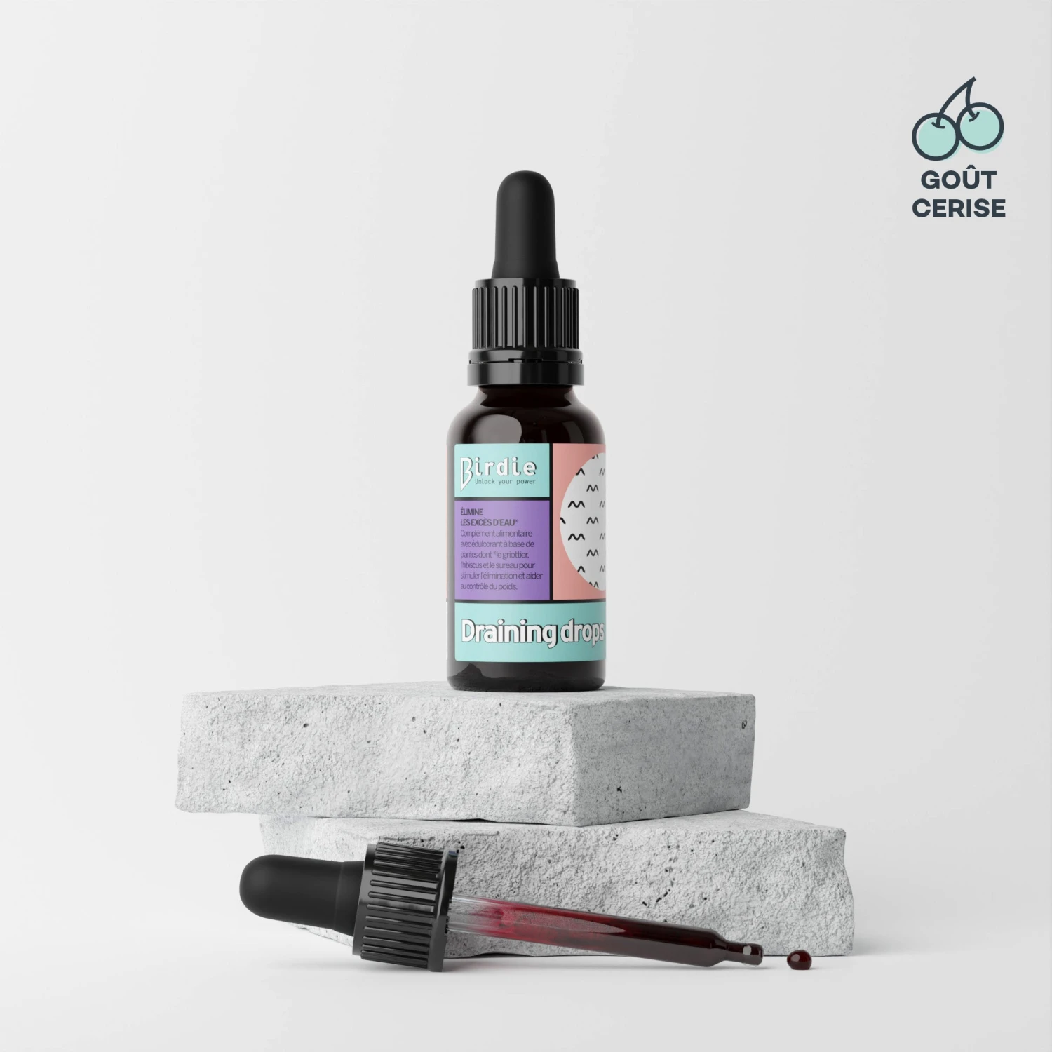 Eau purifiée ; Stabilisant : glycérine ; Extrait de queue de cerise 60 mg (EPS1 240 mg) ; Extrait de sureau noir 56 mg (EPS1 225mg) ; Arôme de cerise ; Extrait de canneberge 20 mg dont proanthocyanne 10% ; Colorant ; Extrait d’hibiscus 5 mg (EPS1 20 mg) ; Edulcorant : Rebaudioside A extrait de stevia ; Acidifiants : acide citrique ; Conservateurs : sorbate de potassium, benzoate de sodium